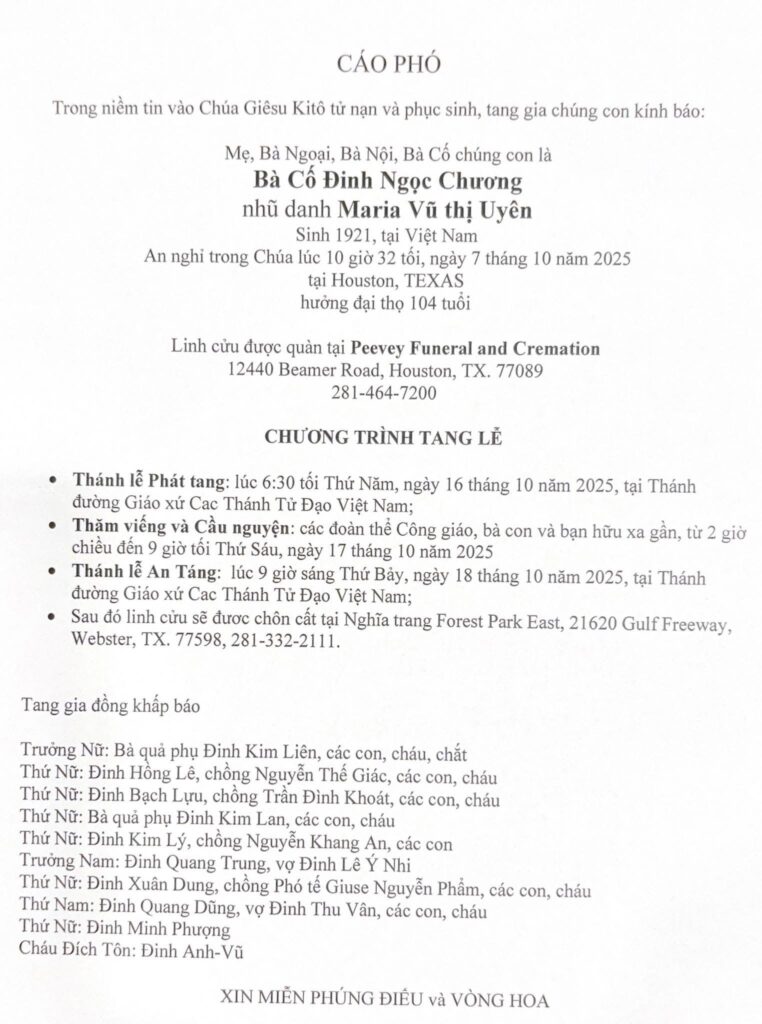 CHI HỘI CÁC THÁNH TỬ ĐẠO VIỆT NAM – HOUSTON, TX