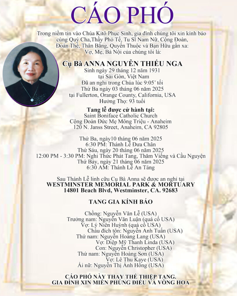 Thuộc chi hội Đức Mẹ Vô Nhiễm – Anaheim, CA